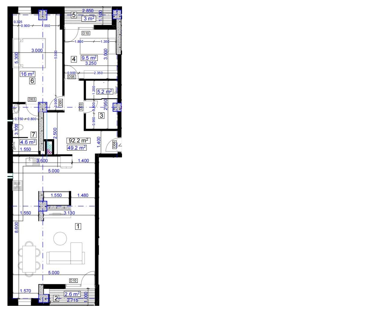 The building has 7 floors.There are underground parking lots(floors P_0 and P_-1) and 8 residential floors with 20 apartments.